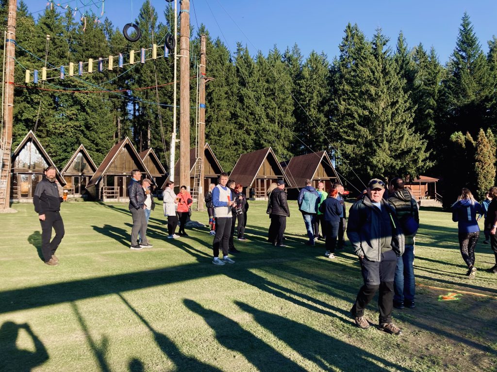 KORAC vybral skvělé místo uprostřed lesů. Baldovec nabízí ubytování, lanové centrum i spoustu aktivit. Chatky nás mile překvapily – promyšlené uspořádání, teplé dřevo, vlastní sociální zázemí, čistota. (A když pomineme sem tam vrzající podlahu, nebylo co řešit.)